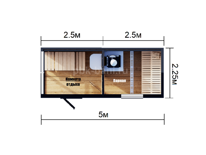 В бане возможно поменять цвет, комплектацию и планировку.