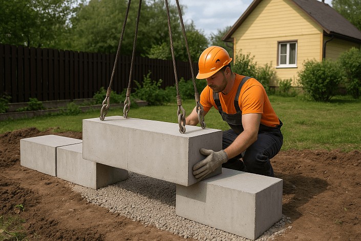 По умолчанию — бетонные столбики. При свайном или ленточном фундаменте условия обсуждаются заранее.