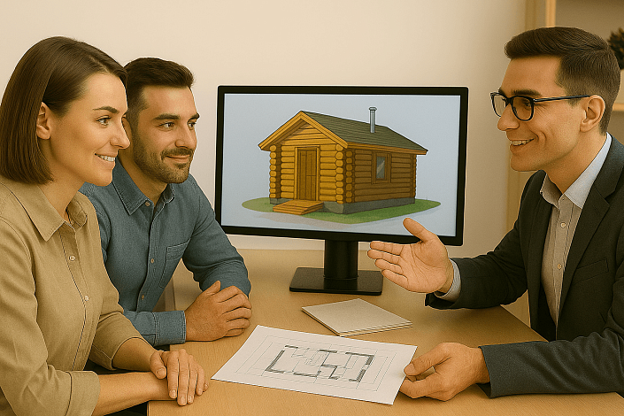 На этом этапе можно изменить планировку, выбрать иной фасад, изменить цвет, утепление в соответствии с климатом, заменить тип фундамента, выбрать другую печь. Также обсуждаются сроки, логистика, условия проживания монтажной бригады и подготовка участка.