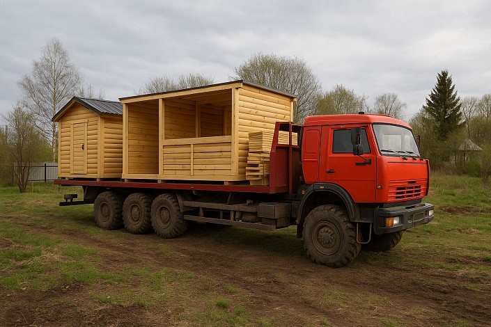 Комплект доставляется на крупногабаритном транспорте. Обсуждаются условия подъезда, разгрузки. При отсутствии манипулятора потребуется площадка для автокрана.