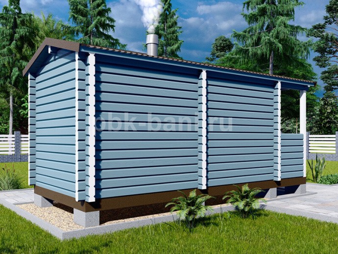 В банях с двухскатной крышей - АРКОЙ, с односкатной крышей - ПРЯМОЙ. Отделка - хвойная вагонка класса «В», крепится по контррейке на оцинкованные гвозди (без стыка). Высота от пола до потолка в самом высоком месте 2 м +/-50мм.