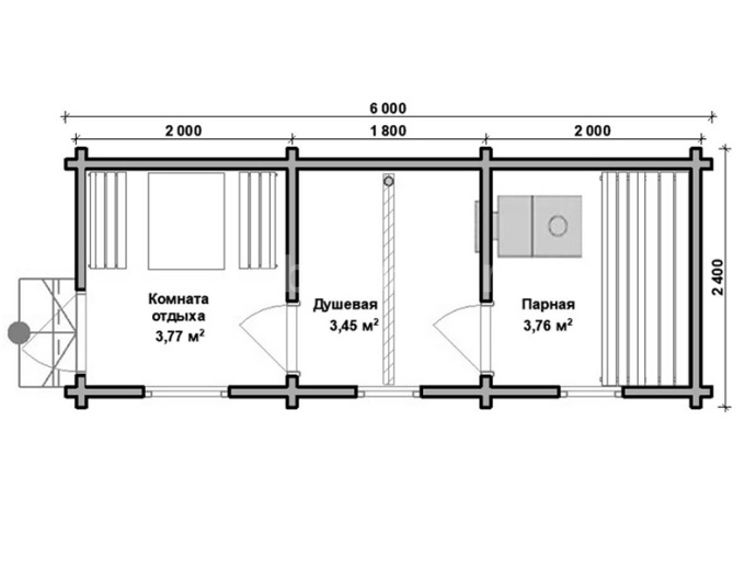В бане возможно поменять цвет, комплектацию и планировку.