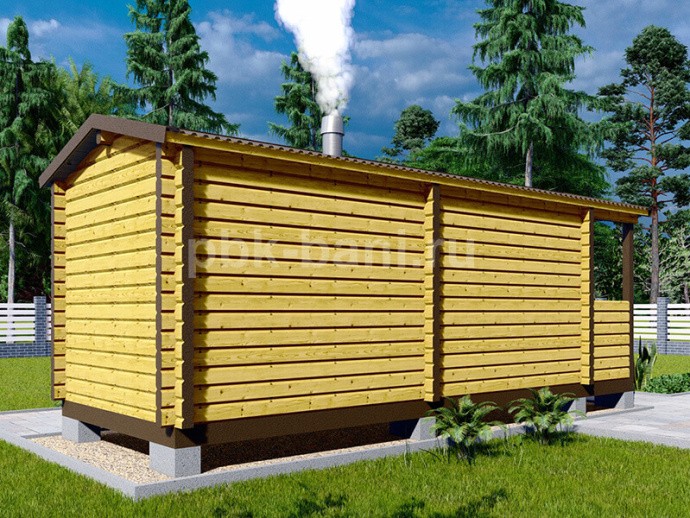 В банях с двухскатной крышей - АРКОЙ, с односкатной крышей - ПРЯМОЙ. Отделка - хвойная вагонка класса «В», крепится по контррейке на оцинкованные гвозди (без стыка). Высота от пола до потолка в самом высоком месте 2 м +/-50мм.