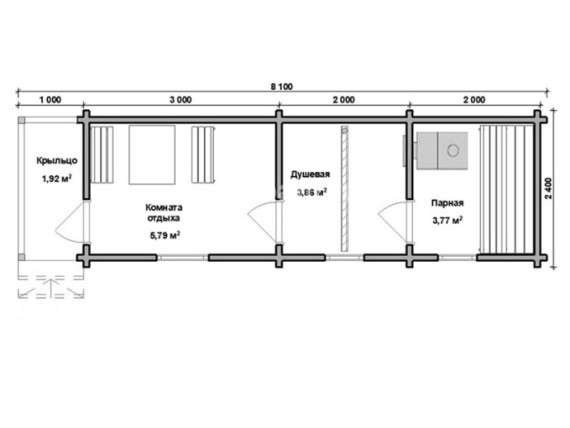 Баня из бруса в чашу «Сабина» 6х2.25 м с доставкой в Московскую область