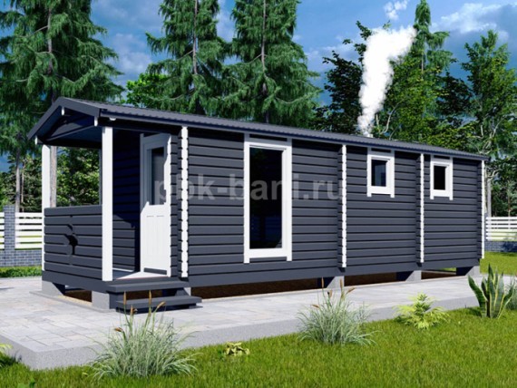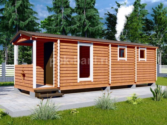 Перевозная баня из бруса «Мальвина» 7.2х2.4