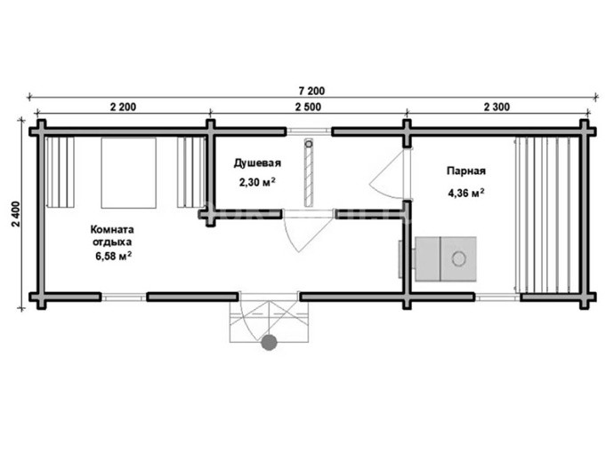 Мобильная баня из бруса в чашу «Снежана» 7.2х2.4