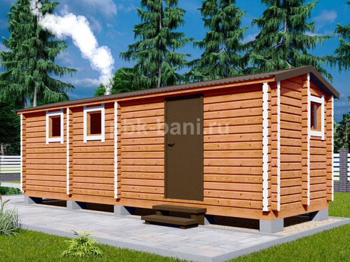 Перевозная баня из бруса «Мальвина» 7.2х2.4