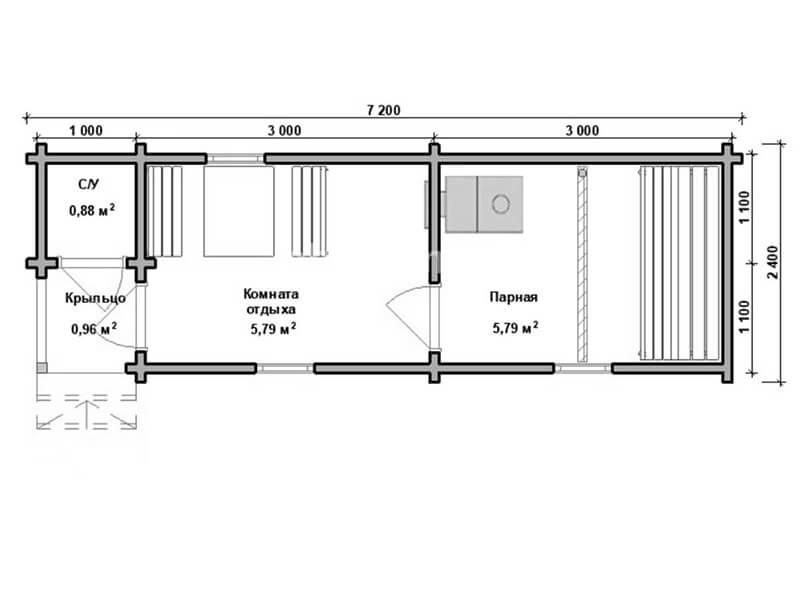Размеры бани указаны по наружным габаритам.