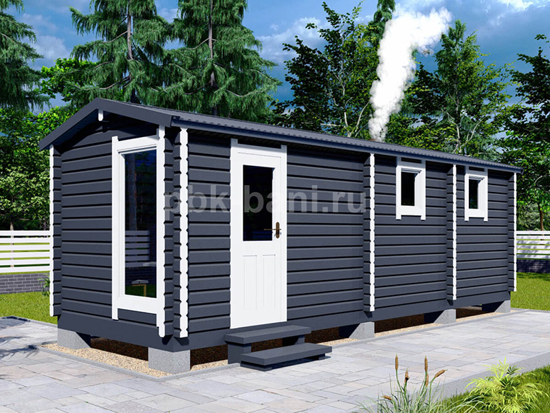 Перевозная баня из бруса «Мальвина» 7.2х2.4