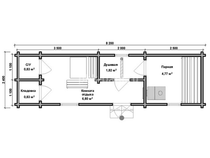 Баня из бруса в чашу «Сабина» 6х2.4 м с доставкой в Ленинградскую область