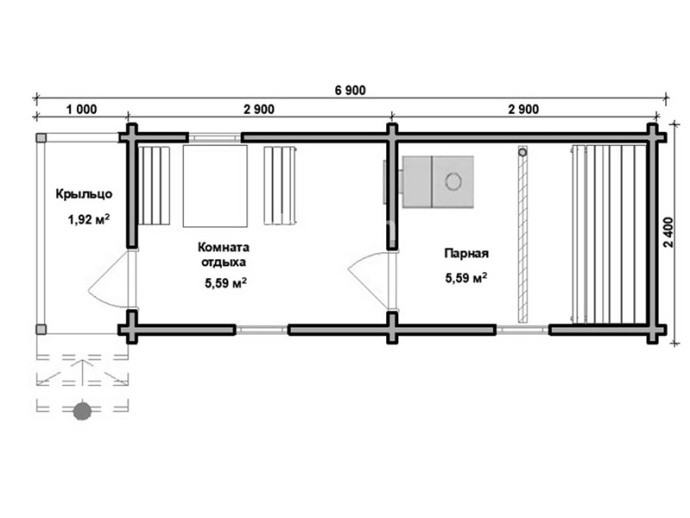 В бане возможно поменять цвет, комплектацию и планировку.