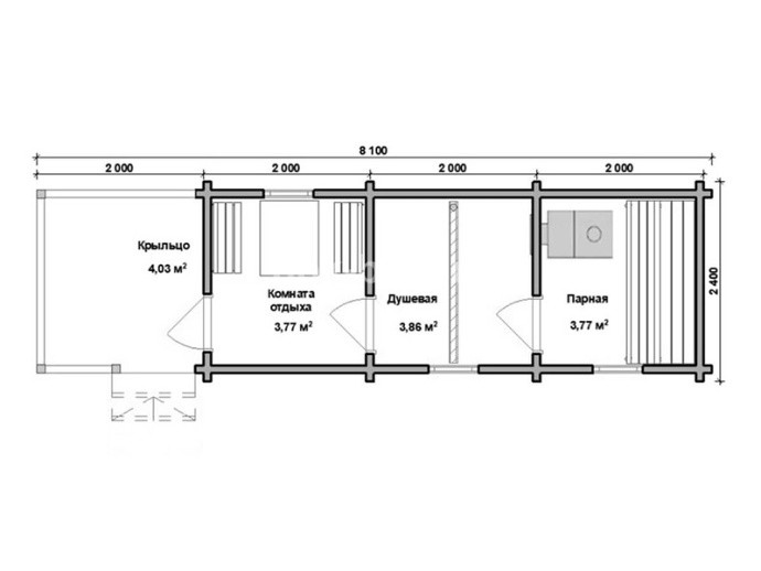 Баня из бруса в чашу «Сабина» 6х2.4 м с доставкой в Ленинградскую область