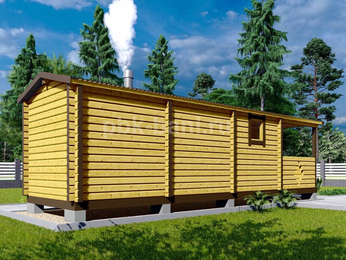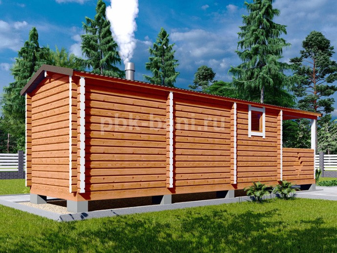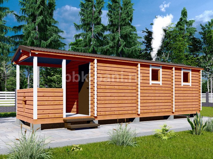 Перевозная баня из бруса «Мальвина» 7.2х2.4