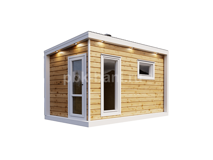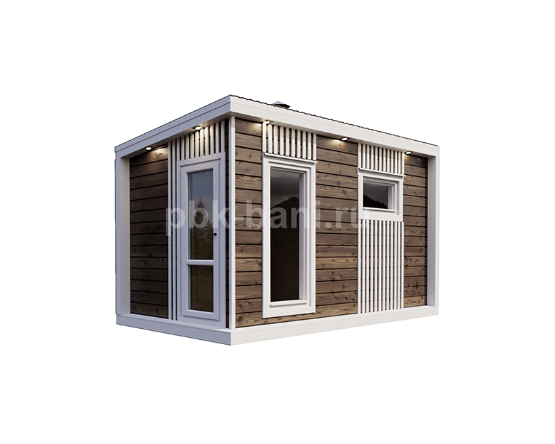Каркасно-щитовые обшиты имитацией бруса «В» камерной сушки с двух сторон (без стыка), монтируются на оцинкованные гвозди.