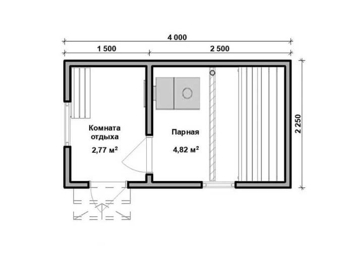 Внутри мобильной бани находится комната отдыха – уютное пространство, где можно обустроить систему хранения для одежды и инвентаря, а также зону для продуктивного отдыха. Второе помещение – просторная парная, в ней установлена печь, необходимая для прогрева и поддержания комфортной температуры, и лежаки, на которых смогут устроиться более 3 человек.
