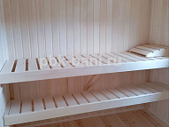 Брус профилированный 90мм | Кровля | Окна, двери | Утепление | Внутренняя отделка | Покраска | Заводская печь | Электрика | Сантехника | Полок в парной | Мебель | Фундамент