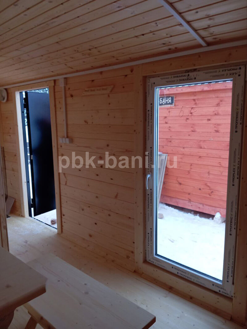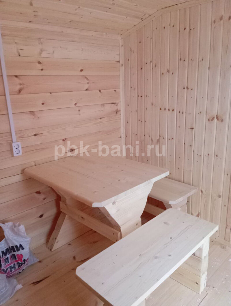 Брус профилированный 90мм | Кровля | Окна, двери | Утепление | Внутренняя отделка | Покраска | Заводская печь | Электрика | Сантехника | Полок в парной | Мебель | Фундамент