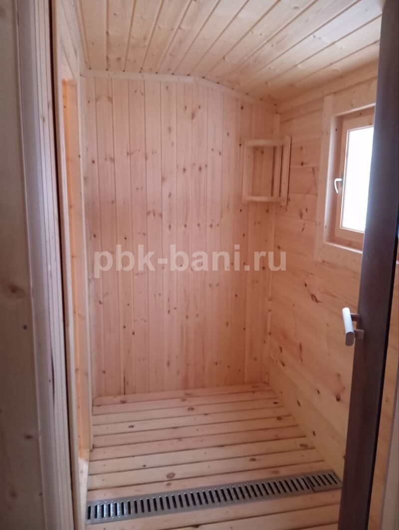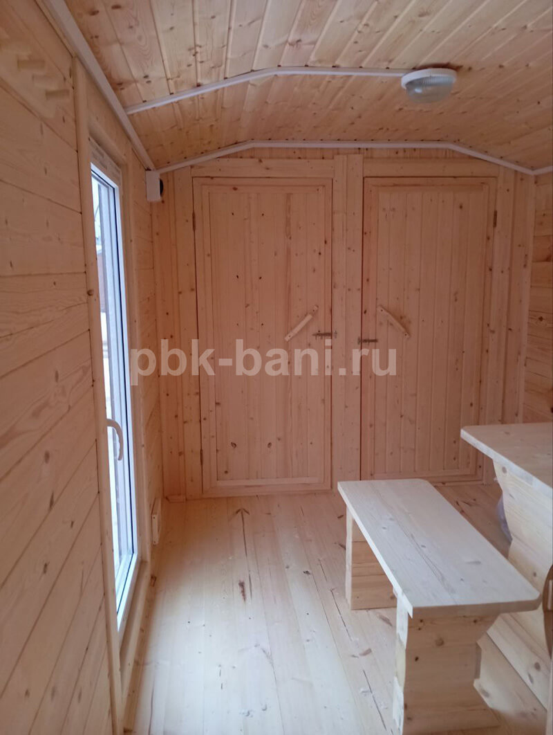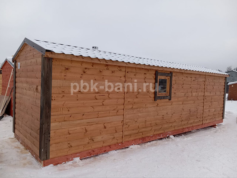 Мобильная баня из бруса «Кристина» 8х2.25 м с доставкой в Ленинградскую область