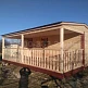 Под общей крышей. Не утепленная. Со столбами, перилами, балясинами. Полы – доска строганная 36мм с зазором. Потолок - вагонка хвойных пород (возможна стыковка, но не более двух стыков), монтируется на оцинкованные гвозди.
