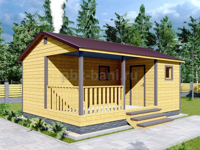 Каркасная баня с террасой 6х4,5 под ключ