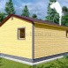 Сочетание строгих геометрических линий и изящной красоты древесины делает дизайн экстерьера запоминающимся. Центральная группа композиции – терраса, площадь которой позволяет установить необходимый набор уличной мебели. Кровля – скатная, предусмотрен дымоход для отвода продуктов горения во время топки печи. Проникновение естественного освещения во все помещения обеспечивают 4 окна.