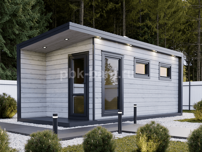Мобильная баня в скандинавском стиле «Гера» 6х2.3