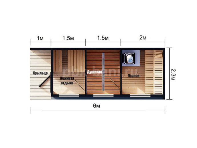 В бане возможно поменять цвет, комплектацию и планировку.