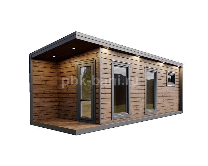 Мобильная баня в скандинавском стиле «Фаина» 6х2.3 м