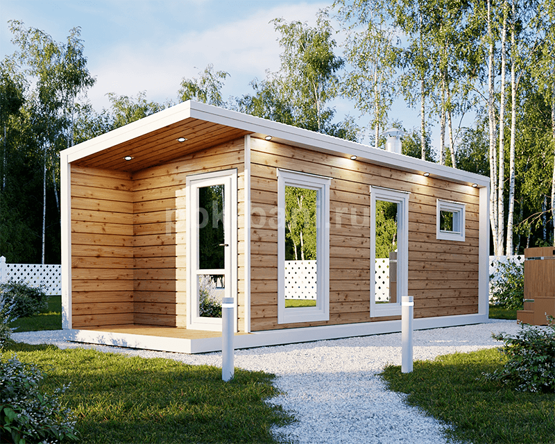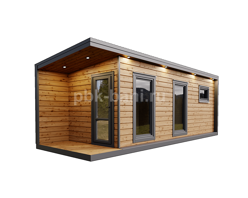 Мобильная баня в скандинавском стиле «Бирна» 7х2.3