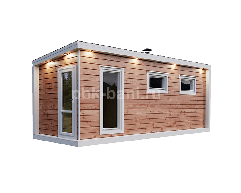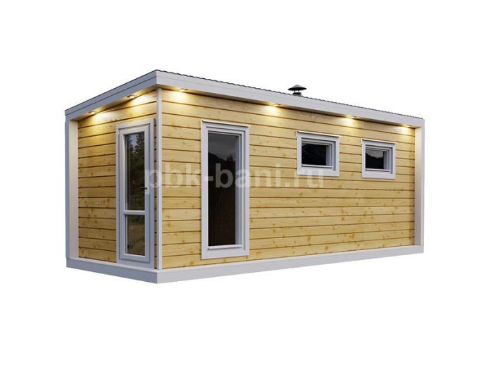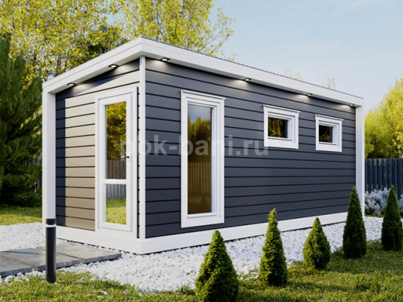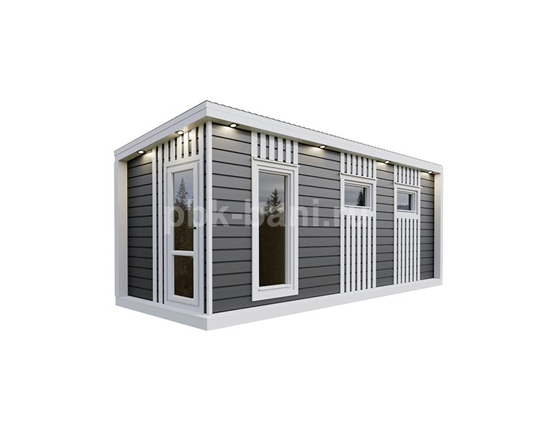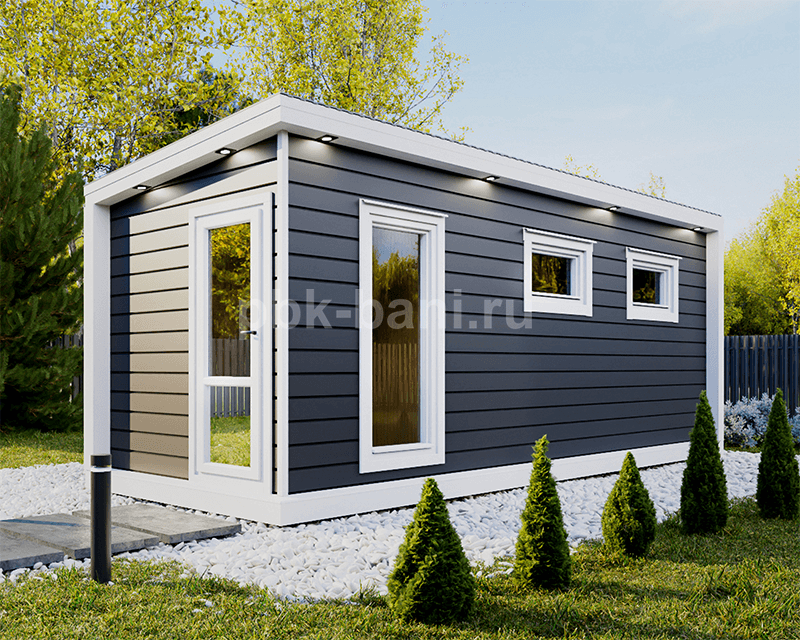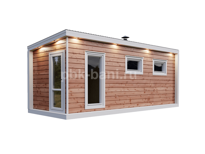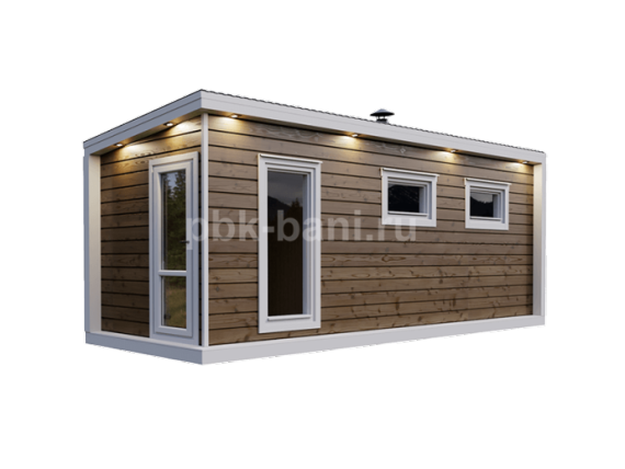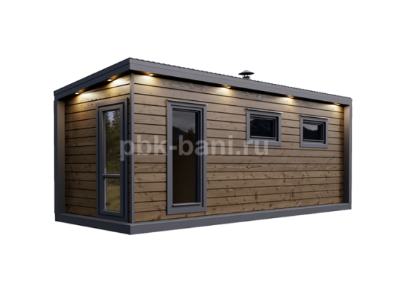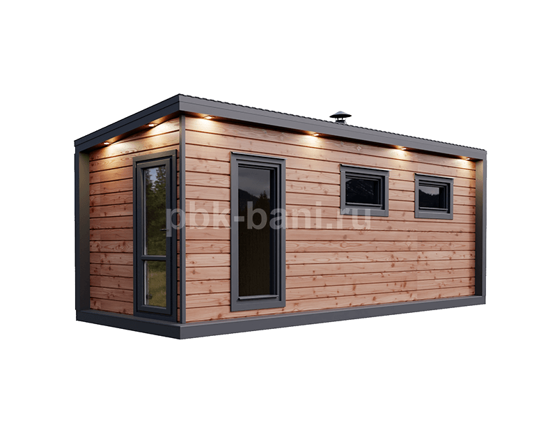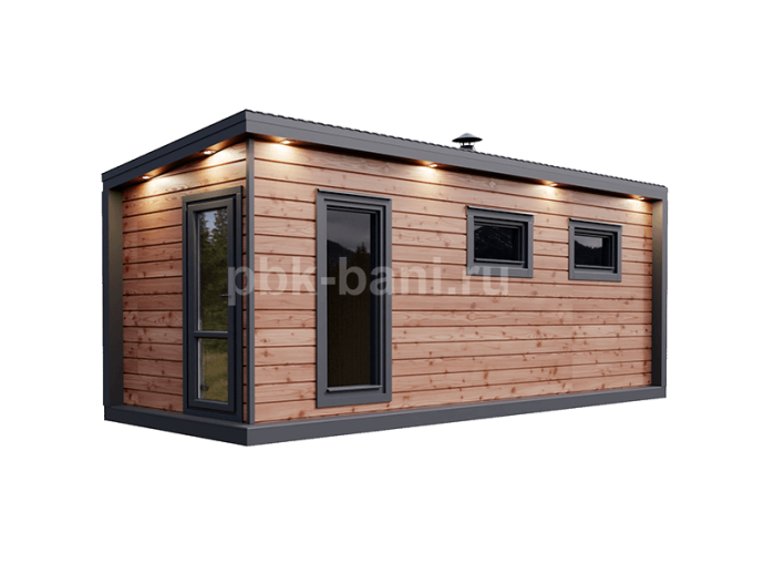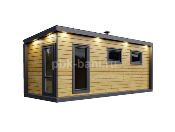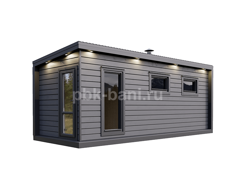 Модульная баня «Фаина» 6×2.3 м с душевой и комнатой отдыха под ключ