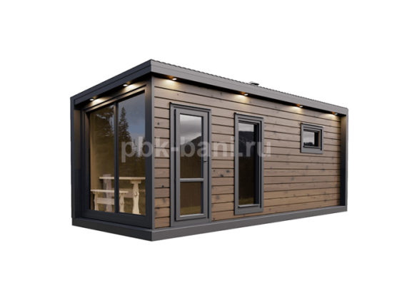 Мобильная баня в скандинавском стиле «Фаина» 6х2.3 м
