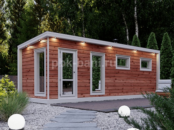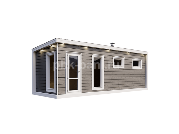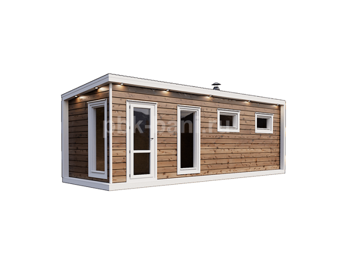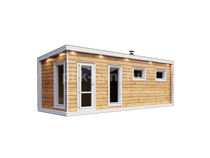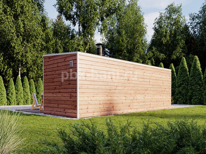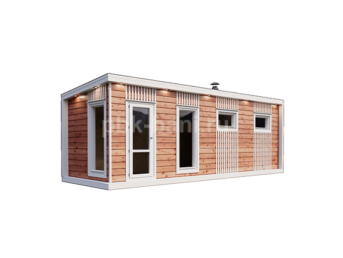 Проект «Севастьяна» 7×2,3: мобильная баня в скандинавском дизайне для отдыха с семьёй