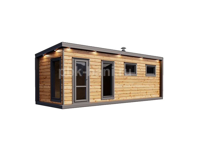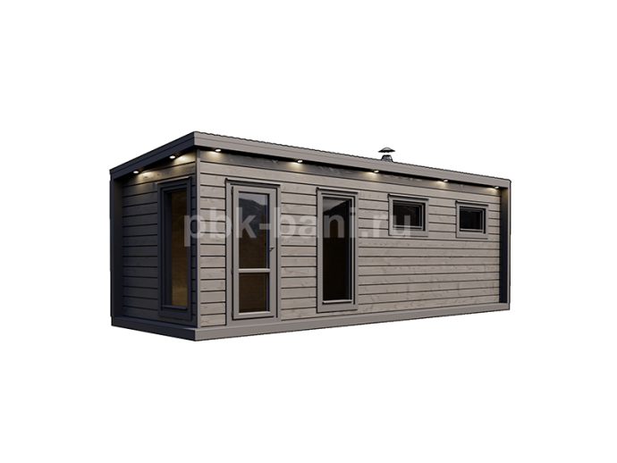 Компактная мобильная баня «Севастьяна» 7×2,3 в скандинавском стиле — идеально подходит для дачи и семейного отдыха. Быстрая установка, доставка по ЦФО и СЗФО, стильный внешний вид.