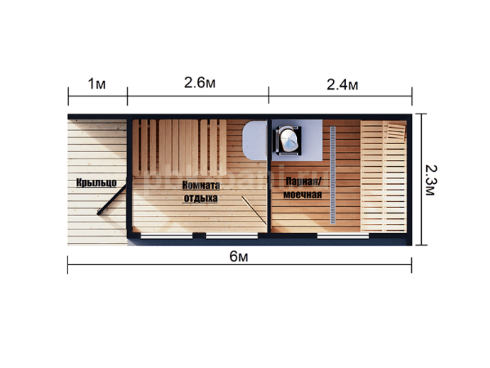 Размеры бани указаны по наружным габаритам.