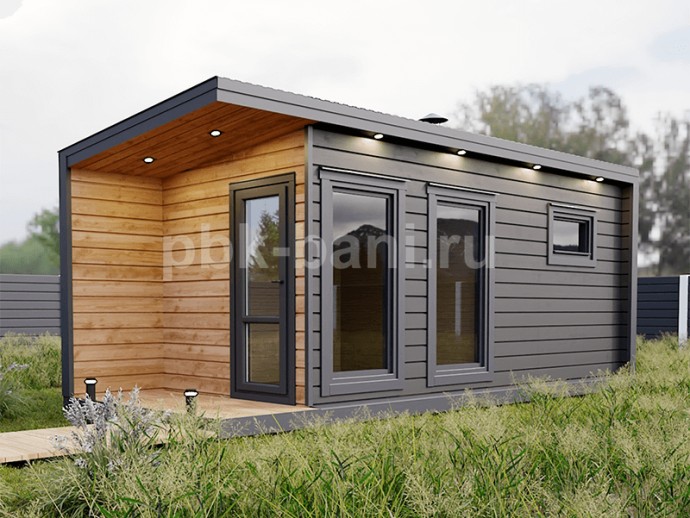 Каркасно-щитовые обшиты имитацией бруса «В» камерной сушки с двух сторон (без стыка), монтируются на оцинкованные гвозди.