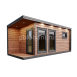 Открытая, с кабелем НУМ в кабель-канале (цвет сосна). Сечение кабеля: 3х2.5 на розетки, 3х1,5 на освещение. Розетки 1 шт. двойная в комнате отдыха, выключатели (2, 3 или 4, в зависимости от проекта) в комнате отдыха, светильники внутри (кол-во в зависимости от кол-ва комнат) в каждом отделении, светильники встроенные в поднебесниках снаружи (кол-во в зависимости от проекта), автоматы 6А и 16А в комнате отдыха. Выход кабеля для подключения к наружным сетям у входной двери. Абажуры над полками, подводка кабеля без кабель-канала. Примечание: при сборке на участке заказчика, электрика доставляется в комплекте без монтажа.